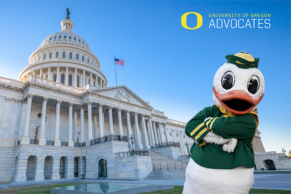 You can join them. By sending a quick message to your representatives, you’ll help protect research funding and join the UO Advocates network, a group of passionate alumni across the country making sure the UO’s voice is heard, and Oregon’s students and future are supported.