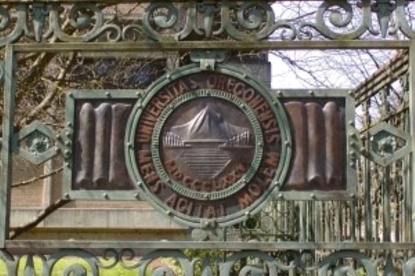 Dads’ Gates are an architectural staple of the University of Oregon. The 8-foot tall and 120-foot-long wrought iron gates greet Ducks at the north entrance of campus between the Robinson Theatre and McKenzie Hall.