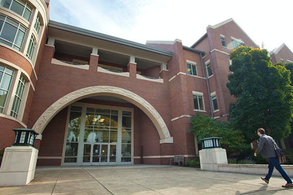 The Knight Law Center opened in 1999 at the corner of 15th and Agate. The center, which was named in honor of state legislator and The Oregonian newspaper publisher William W. Knight, LLB ’32, houses the School of Law along with the Wayne Morse Center for Law and Politics.