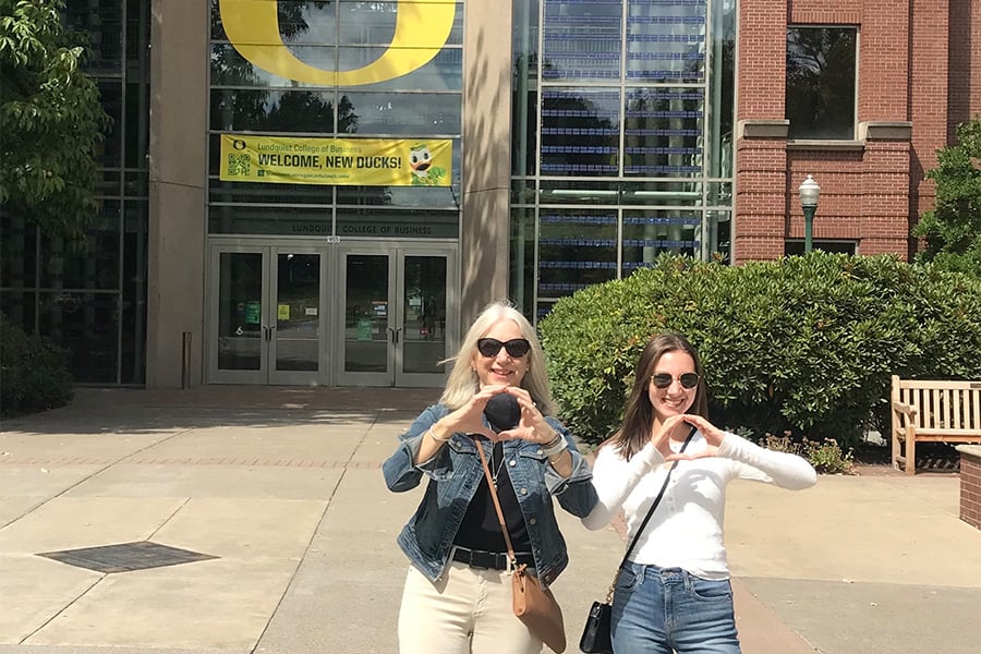 “The fact that my daughter is a Duck and aspires to attend the UO law school is so special [and has] made me feel truly proud to be a Duck. While I made sure to allow Maddy to develop her own feelings and opinions about the UO, I believe that explaining the support, encouragement, and resources I received from the UO made her all the more enthusiastic about joining the flock!” Diane says.