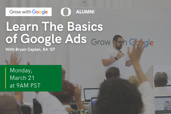 Consumers no longer “go online,” they live online! In fact, 49 percent of shoppers surveyed said they use Google to discover new items or products, and each search is an opportunity for your business to connect with potential customers. Are you showing up? Join UO alumnus Bryan Caplan, your dedicated trainer for Grow with Google, as he walks you through the ins and outs of Google Ads. In less than an hour, you’ll learn how Google Ads work and walk away with a plan to create your own text ads to attract more customers.