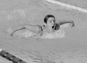 Carolyn Wood, then just 14 years old, swims for the USA at the 1960 Summer Olympics in Rome (photo by ANEFO)