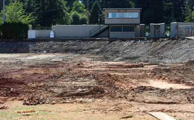 A cleat cleaner sits alone in what used to be Howe Field's left field area. Construction on Jane Sanders Stadium began two days after the 2015 season ended, and the new park is expected to be ready in time for the start of the 2016 season. Howe Field, built in 1936 as a baseball stadium, had been the home of the UO's softball team since 1987.