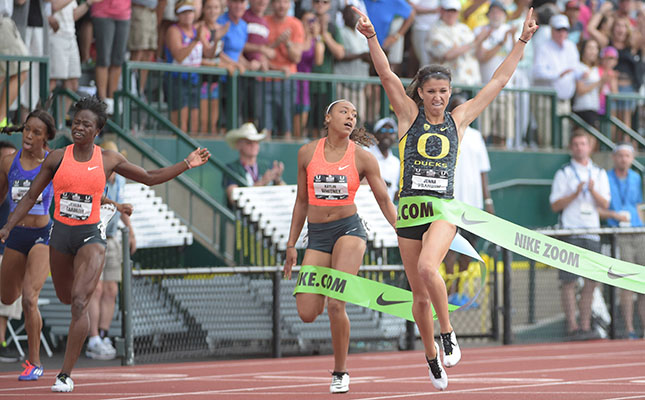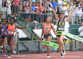 The USATF Championships, held June 25–28 at Hayward Field, were good to the Ducks, with three current or former students winning their events outright. Rupp took home the 10,000m title, Centrowitz the 1,500m, and Prandini got the Hayward Field crowd to its feet in the 200m, winning the title just two weeks after winning the NCAA championship on the same track.