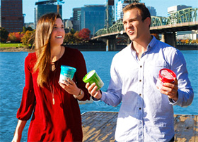 Many of the ingredients, including the dairy, fruit, and mint leaves, are locally sourced from Oregon farms. The brand currently offers seven flavors: Cinnamon Doodle (Sanders’ favorite), Mocha Joe (Spencer’s favorite), Strawberry Sunrise, Vanilla Dream, Mint to Be, Birthday Bash, and Chocolate Blast.