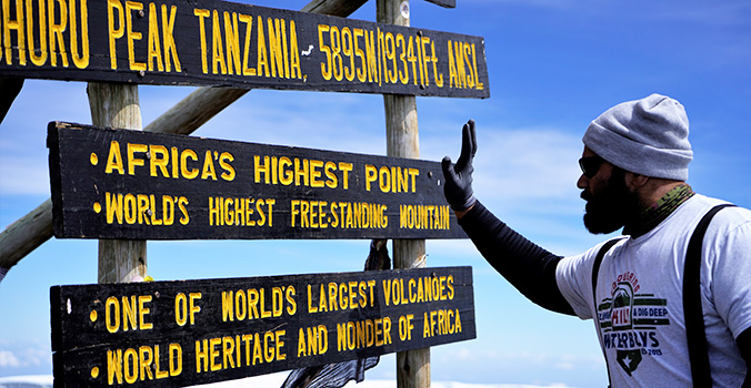 Main image of Haloti Ngata on the summit of Mt. Kilimanjaro courtesy Doug Pitt.