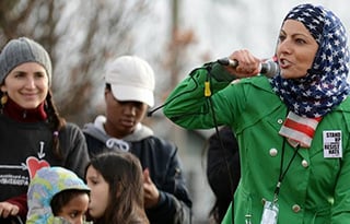 Aneelah Afzali speaks during a Womxn March in Seattle. Photo courtesy Jack Storms.