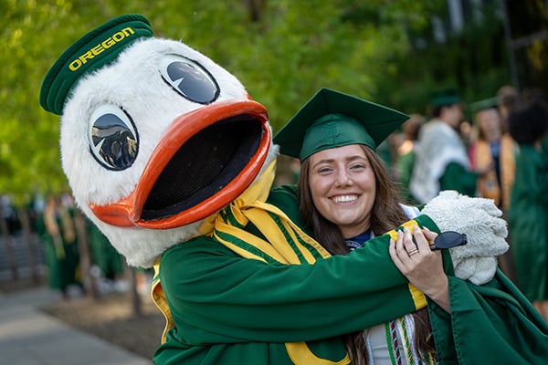 Every June, the UO community celebrates the newest group of graduates, as they turn their tassels and embark on a new chapter of their lives as Duck alumni. Most graduates agree that their time at the UO goes by in the blink of an eye. One day, they’re a first-year student arriving at IntroDUCKtion or a graduate student immersing themselves in advanced research for the first time. And then seemingly the next day, they’re taking that last final, applying to post-grad jobs, and celebrating the moment with friends and family.