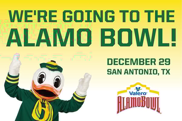 December 9, 2021 Join the UOAA's exclusive travel program as the Ducks head to San Antonio to battle at the Alamo. https://ducksfantravel.com/event/alamo-bowl/