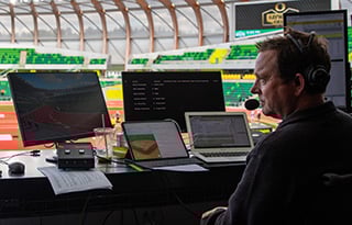 “In most cases there are three, maybe four or five events going on at the same time,” said Swangard, who helps direct the attention of the crowd so they do not miss a performance, “to help drive energy to the long jump runway, where an athlete wants the attention of the crowd in between a lapse of the 5000-meter” and to then give crowd immediate context about what they just witnessed. From Olympic standards to personal bests to team points, Swangard helps fill in information about the athletes giving their all on the track.