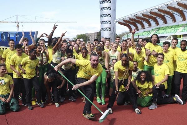 2022 Men's and Women's Track and Field team after sweeping the Pac-12 Championships; Photo credit: UO Athletics