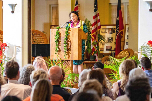 May 3, 2023 Brandy Nālani McDougall, MFA ’01 (creative writing), uses storytelling and poetry as a force for healing and connection, pilina, to and through the land, ʻāina, for the people of Hawaiʻi. https://around.uoregon.edu/content/uo-alumna-named-hawaiis-new-poet-laureate?utm_source=uoaa&utm_medium=shout&utm_campaign=may23
