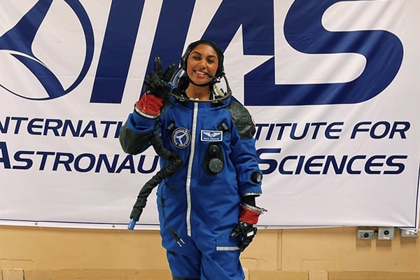 “They’re my heroes and so getting to work with them was very pivotal for me because I went from looking up to them, to working with them, to then training them on the Orion spacecraft and how to operate it,” Bangalore says. “I was twenty—I was young—so I think just looking back at that moment it’s like, ‘I really did it.’”