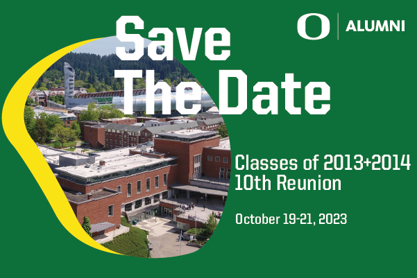 April 14, 2023 The UO Alumni Association is excited to invite the Classes of 2013+2014 for a reunion a decade in the making. Join us October 19–21 on the Eugene campus.