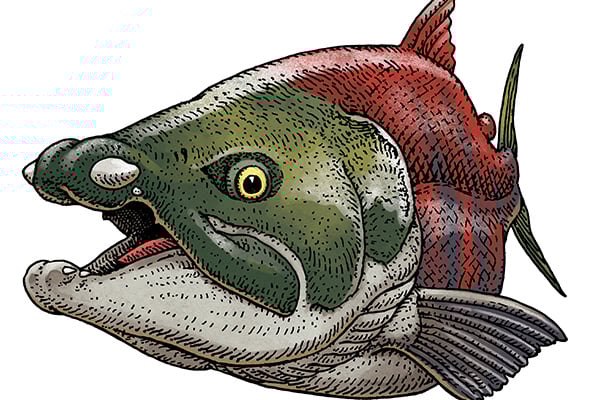 May 7, 2024 New UO research reveals the largest salmon to ever live had tusks protruding from the side of its jaw, instead of the downward-pointing teeth scientists formerly thought it had. https://around.uoregon.edu/saber-no-more-giant-prehistoric-salmon-had-spike-teeth