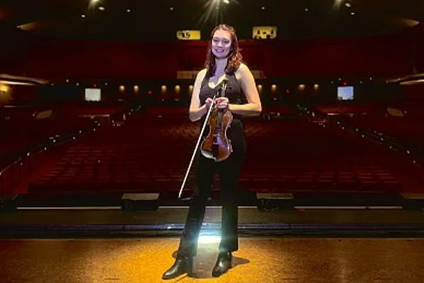 Annika Porter, class of 2023 (music, educational foundations), is a pit orchestra violinist on The Book of Mormon national tour. Since September 2022, she's performed eight shows a week across twenty-seven states.