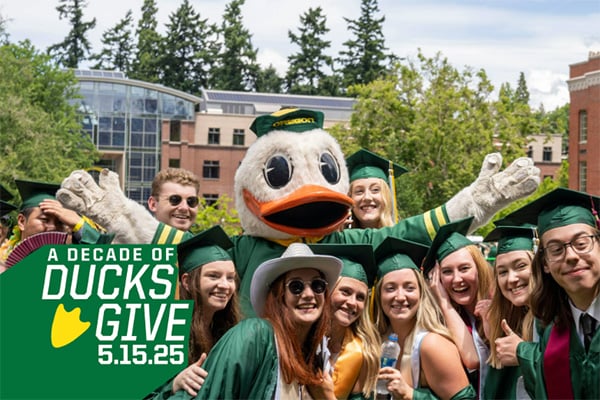 On Thursday, May 15, the UO community will come together to make an impact on the lives of current and future Ducks through the tenth annual Ducks Give.