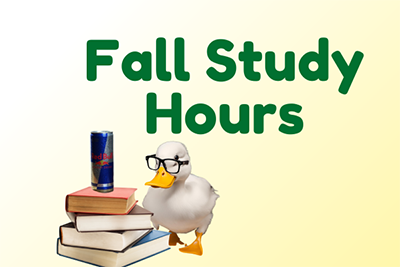 Join us at the Ford Alumni Center on December 8 and 9, from 7:00 p.m.–midnight to study for your final exams, finish up your assignments, or practice your presentations! Take advantage of the Ford Alumni Center's quiet (or loud) study spaces, print service, and great views. We will also have some studying essentials such as Red Bull, coffee, tea, snacks, and Insomnia Cookies!
