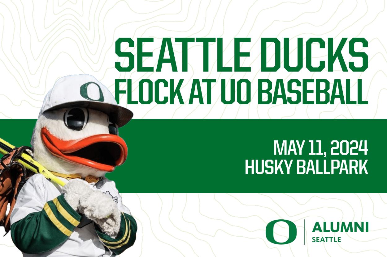 Calling all Ducks baseball fans! You’re on deck to join the Seattle Ducks Chapter as UO Baseball takes on the Huskies on Saturday, May 11 at Husky Ballpark. We can just see you now, showing your Ducks pride in green and yellow as the crowd goes wild!