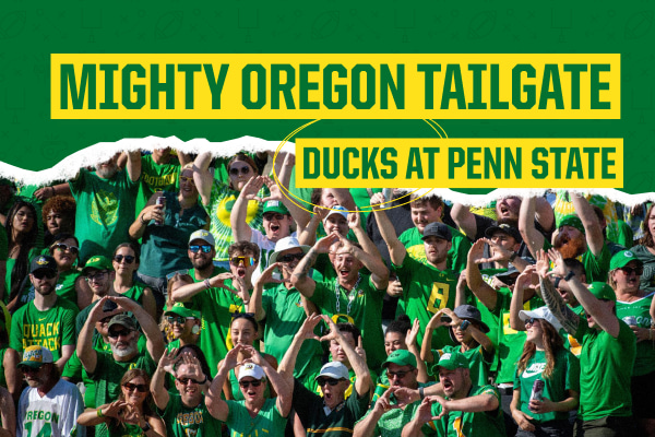 September 27, 2025 | 5 – 7pm EDT Happy Valley, PA Flock with us to Penn State for the Mighty Oregon Tailgate and show your Duck pride during the Nittany Lions’ white out game. https://uoaa.uoalumni.com/events/mighty-oregon-tailgate-penn-state