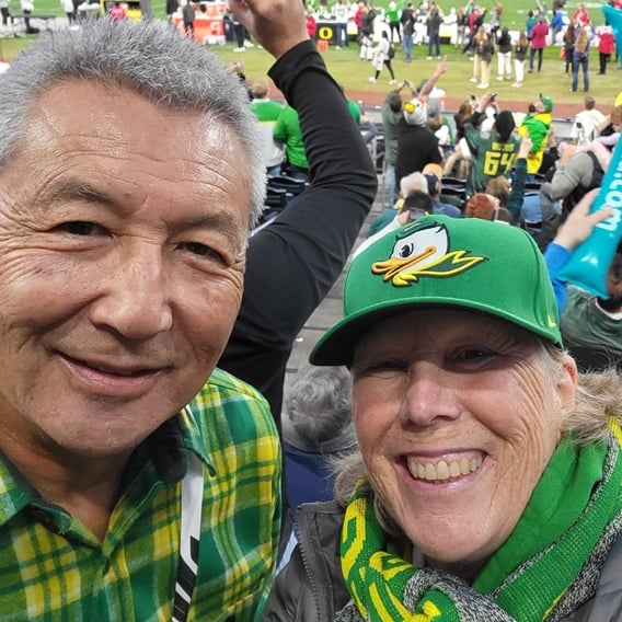 I’m a [Life] Member because of the people! As a member of the UO Alumni Association, I love meeting Ducks everywhere. I see the ‘O’ on cars and shirts all over. Go Ducks!